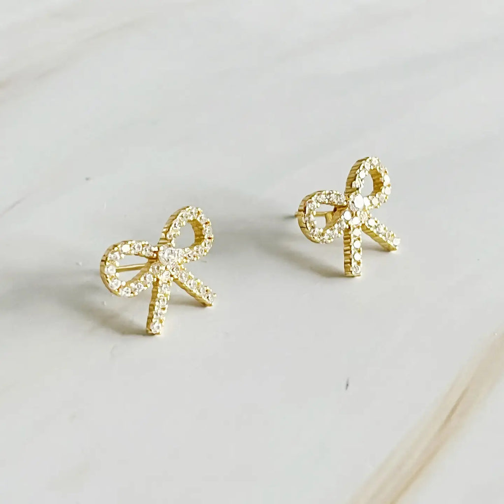 Gold Maxi Sparkler Holiday Statement Stud Bow Earrings