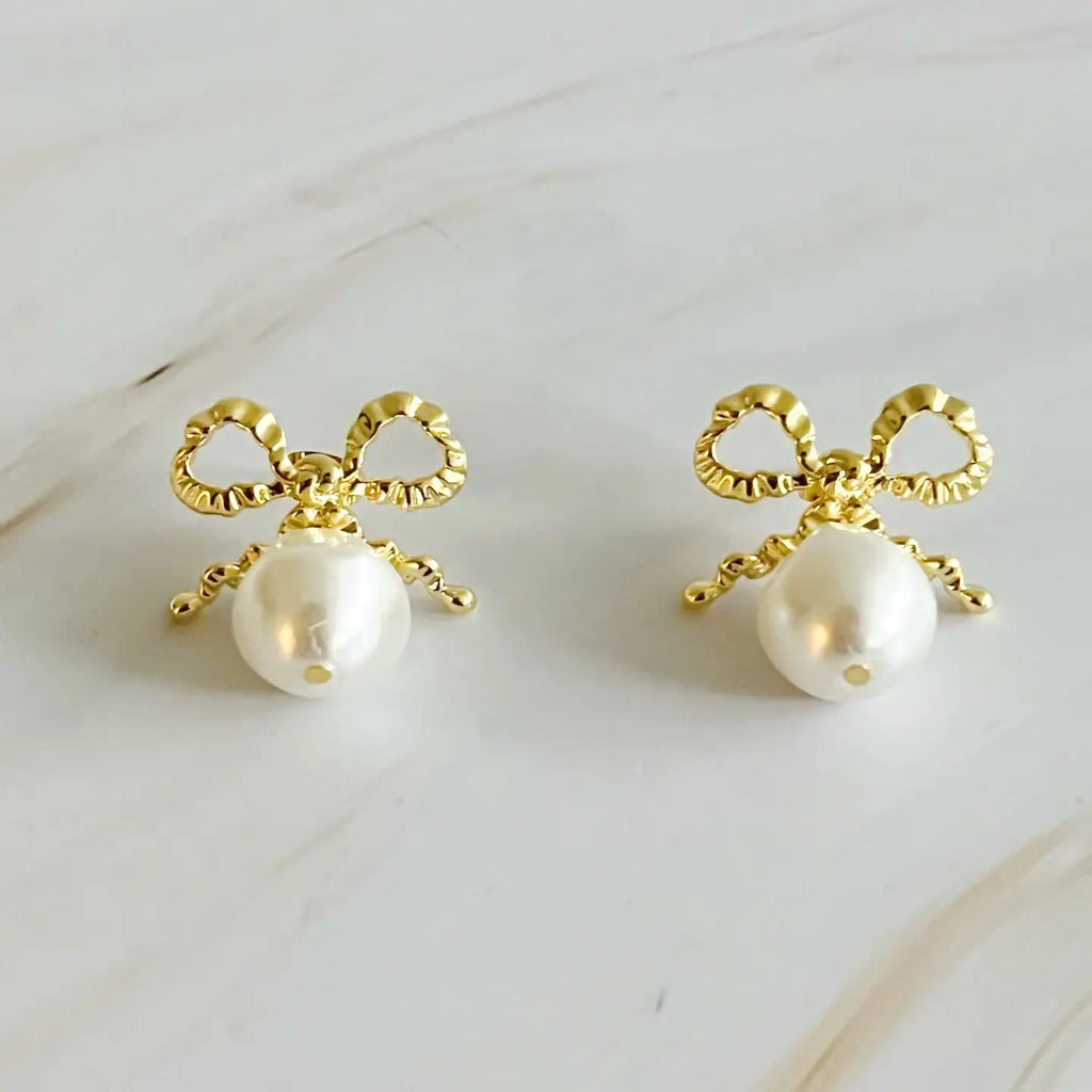 Dangle Pearl Antique Bow Earrings