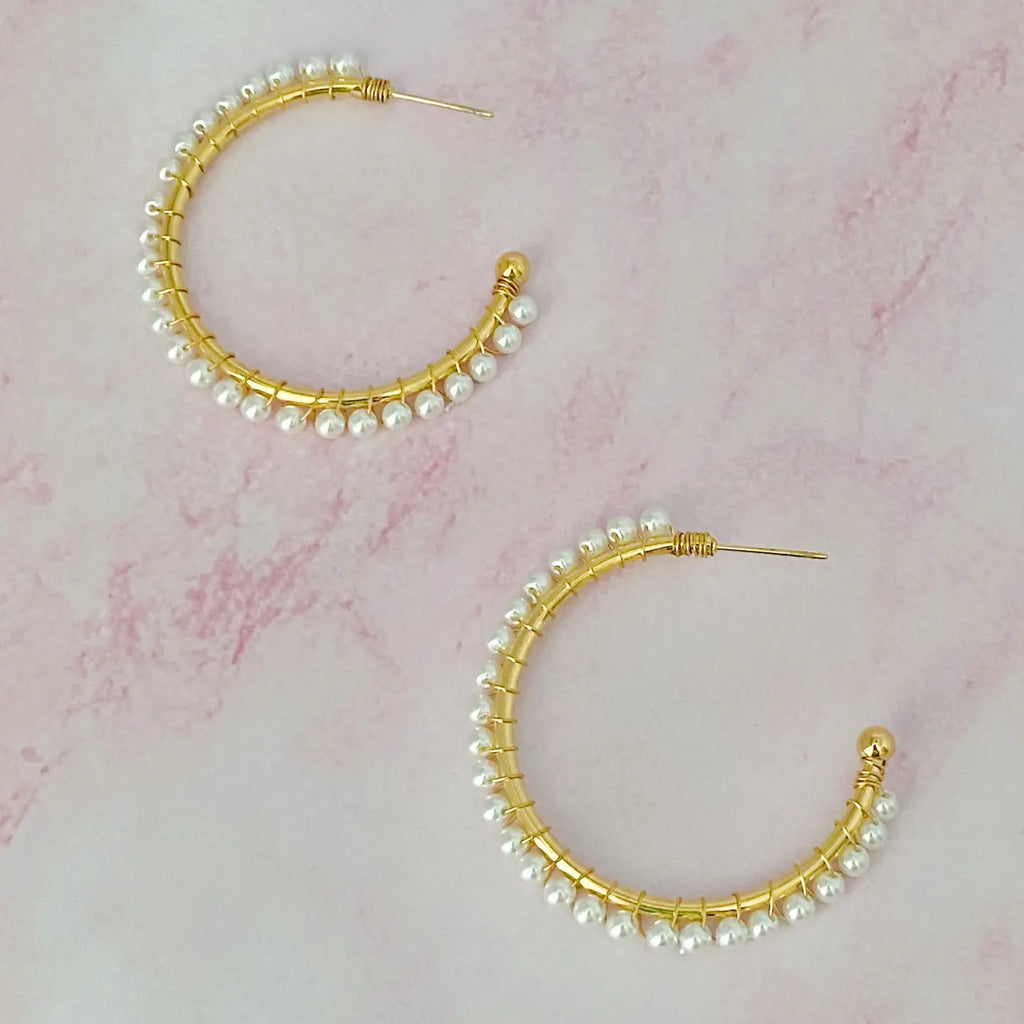 Precious Pearl Bead Hoop Earrings