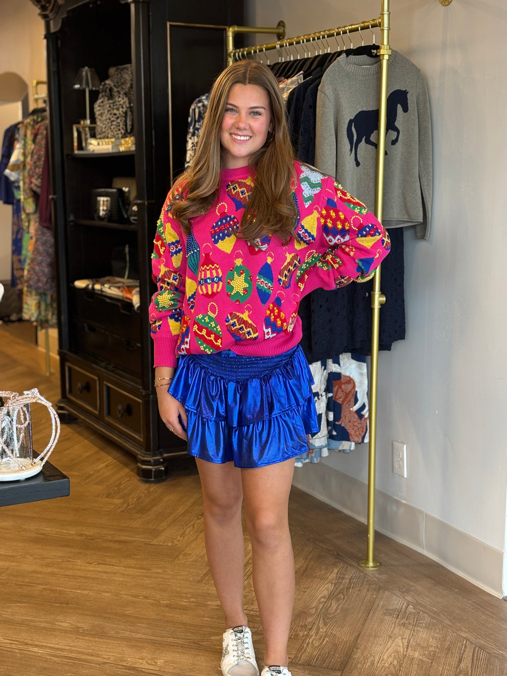 Queen Of Sparkles Hot Pink Multi Jeweled Ornament Sweater