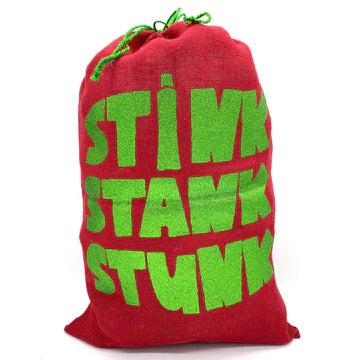 SANTA SACK WITH GLITTER PRINT IN RED "STINK, STANK, STUNK"