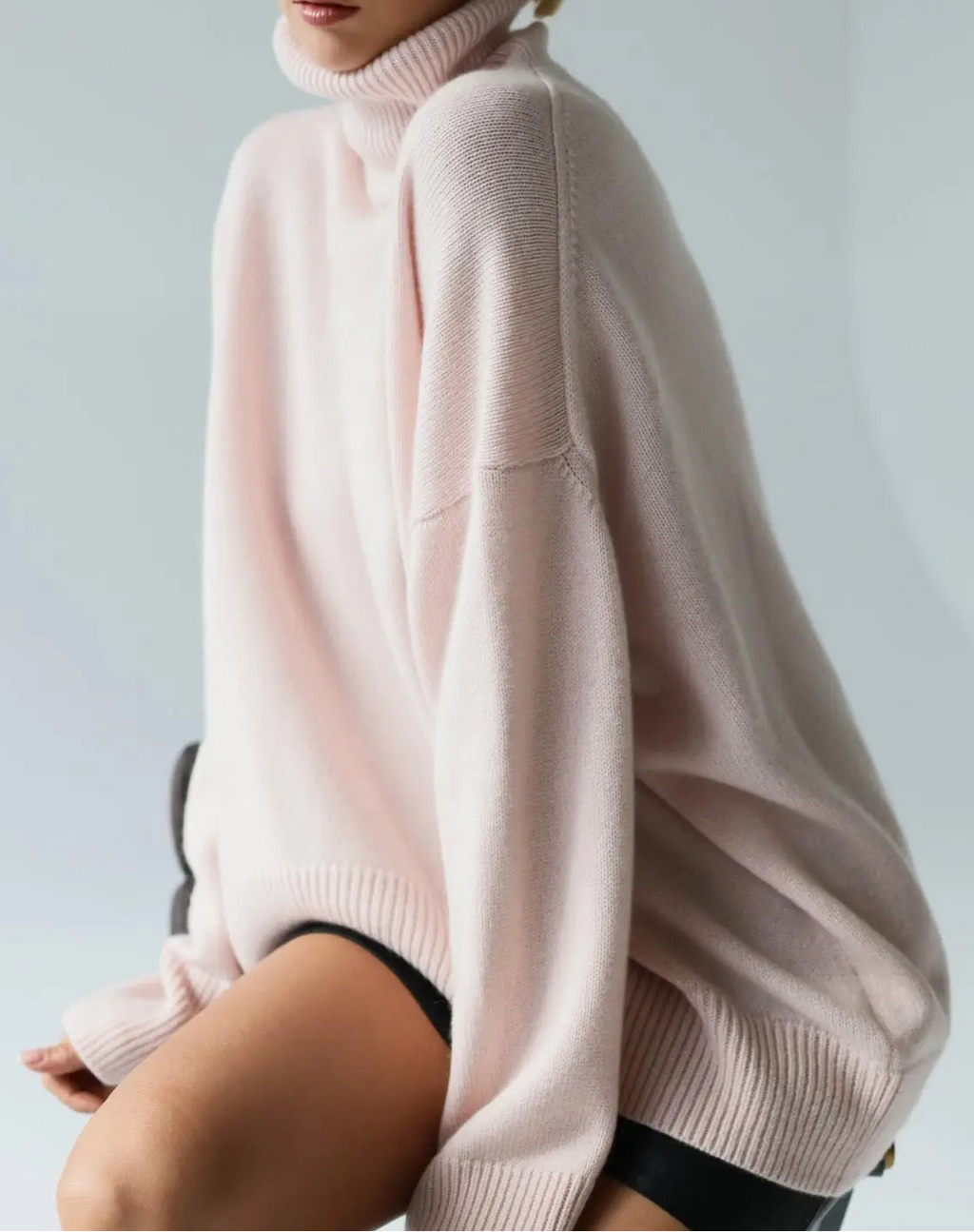 Ladies Solid Misty Pink Turtleneck Knit Sweater