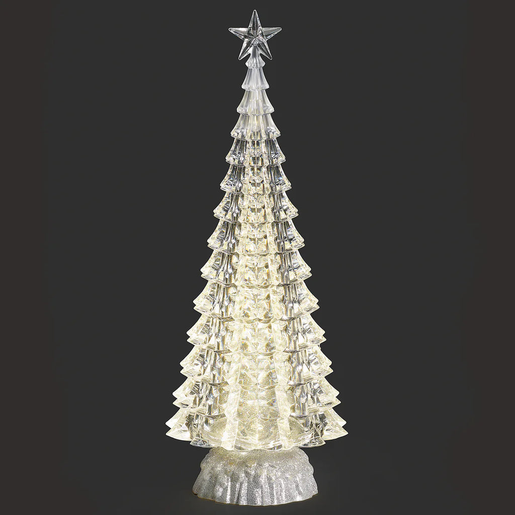 Lighted Swirl Silver Tree with Glitter Base - Confetti Lites